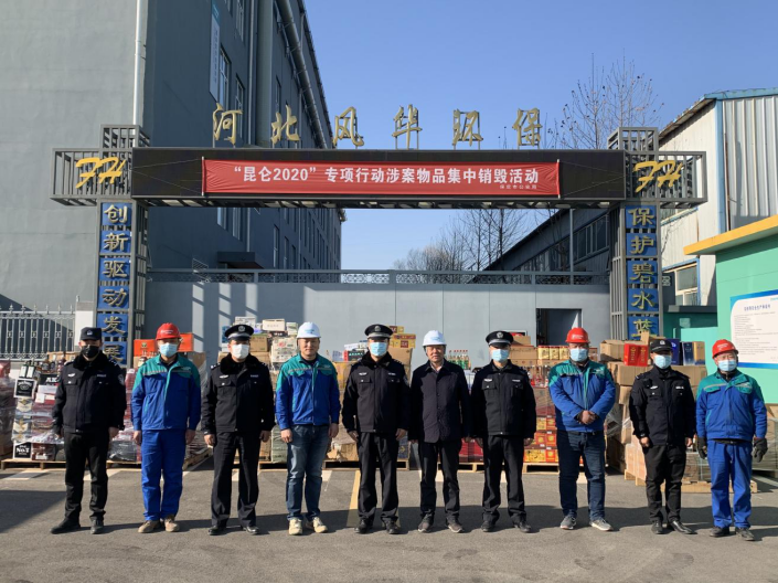 2020年12月25日上午,保定市公安局在河北風華環保科技股份有限公司組織舉行“昆侖2020”專項行動涉案物品集中銷毀活動,對保定公安今年以來在開展專項行動過程中扣押的假酒、非法添加保健品等,近10噸涉案物品進行了集中焚燒銷毀。